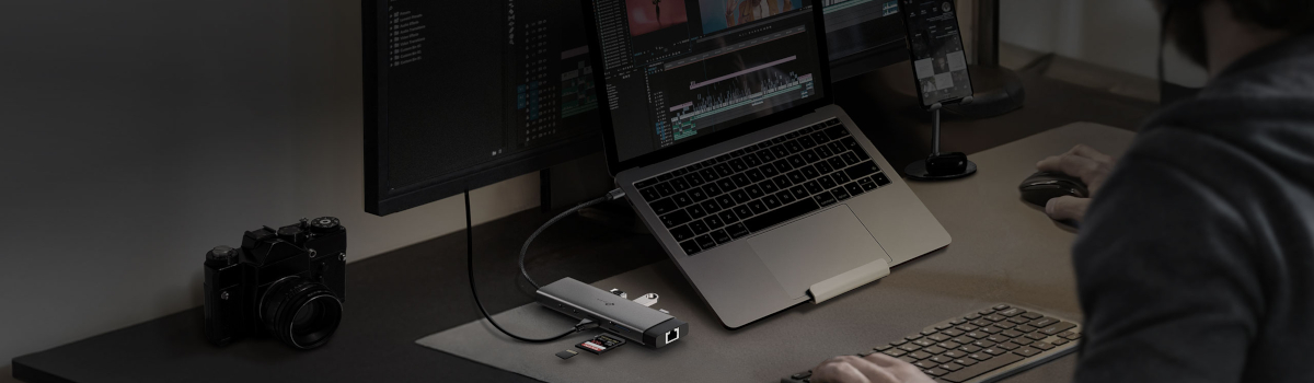 Ten kompaktowy hub oferuje również port Ethernet 1 Gb/s, który zapewnia stabilne i szybkie połączenie internetowe, eliminując problemy z Wi-Fi. To idealne rozwiązanie dla profesjonalistów, graczy czy osób pracujących zdalnie. Dodatkowo, hub wyposażony jest w slot SD i microSD UHS-I, umożliwiający szybki transfer danych z prędkością do 104 MB/s. Możliwość jednoczesnego odczytu i zapisu z obu kart sprawia, że zarządzanie plikami jest niezwykle płynne i wygodne.