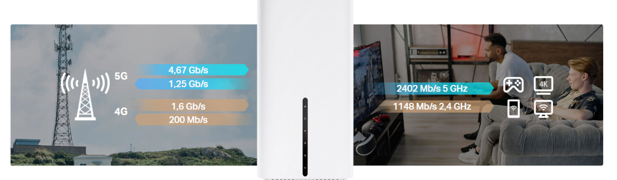 Router Archer NX600 to zaawansowane urządzenie, które zapewni Ci dostęp do najnowocześniejszej sieci 5G. Dzięki niemu możesz cieszyć się prędkością pobierania do 4,67 Gb/s, co pozwala na nieprzerwane oglądanie filmów w jakości Ultra HD, szybkie pobieranie plików oraz płynne wideorozmowy. Router jest wstecznie kompatybilny z siecią 4G, co zapewnia stabilne połączenie nawet w przypadku braku zasięgu 5G.